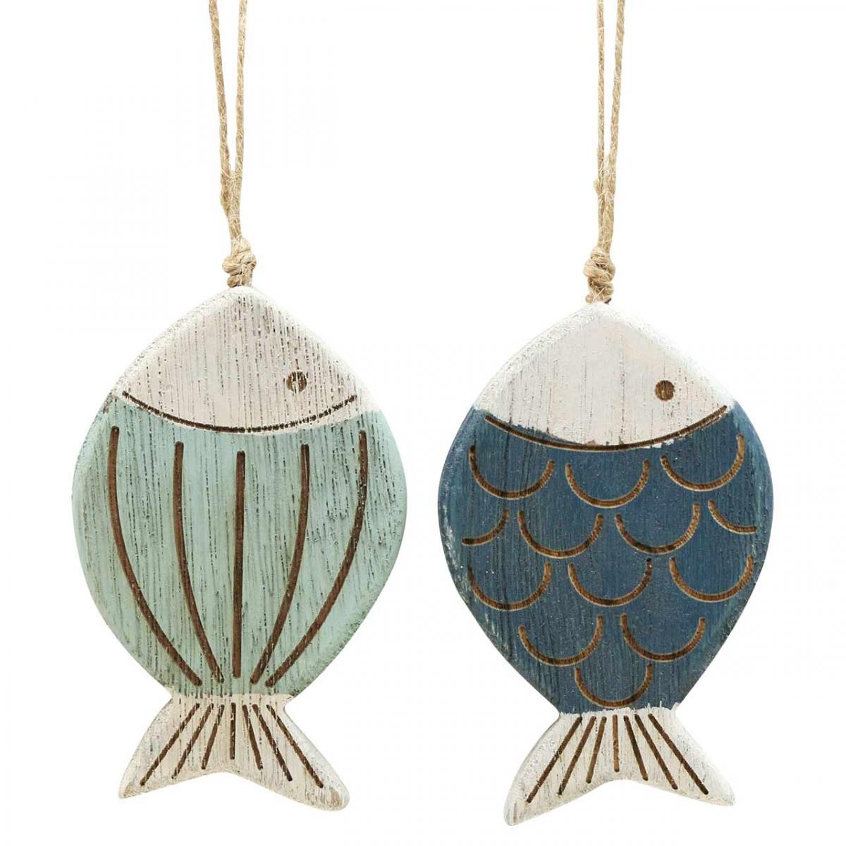 Dekoratív Fish Maritime Függő Dekoráció Fa halkék H11cm 6db