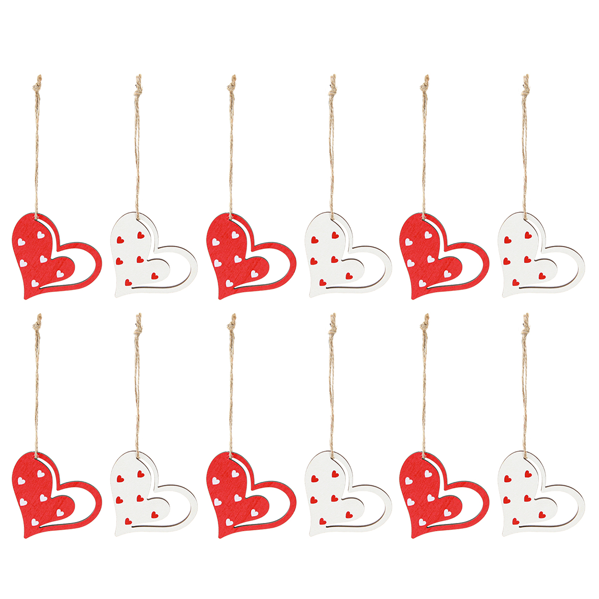 - 12 db dekoratív akasztós szívecskéből álló készlet, 7,5 cm magas