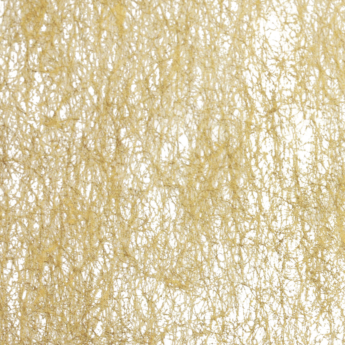A szabálytalan hálóként törött dekoratív gyapjú lenyűgöző tervezési lehetőségeket nyit meg, mivel az alap átvilágít az asztali heveder alatt, és beilleszthető a dekorációba. Használja a matt arany gyapjút a stílusos dekorációkhoz dekorációs anyaggal vagy terítővel kombinálva.