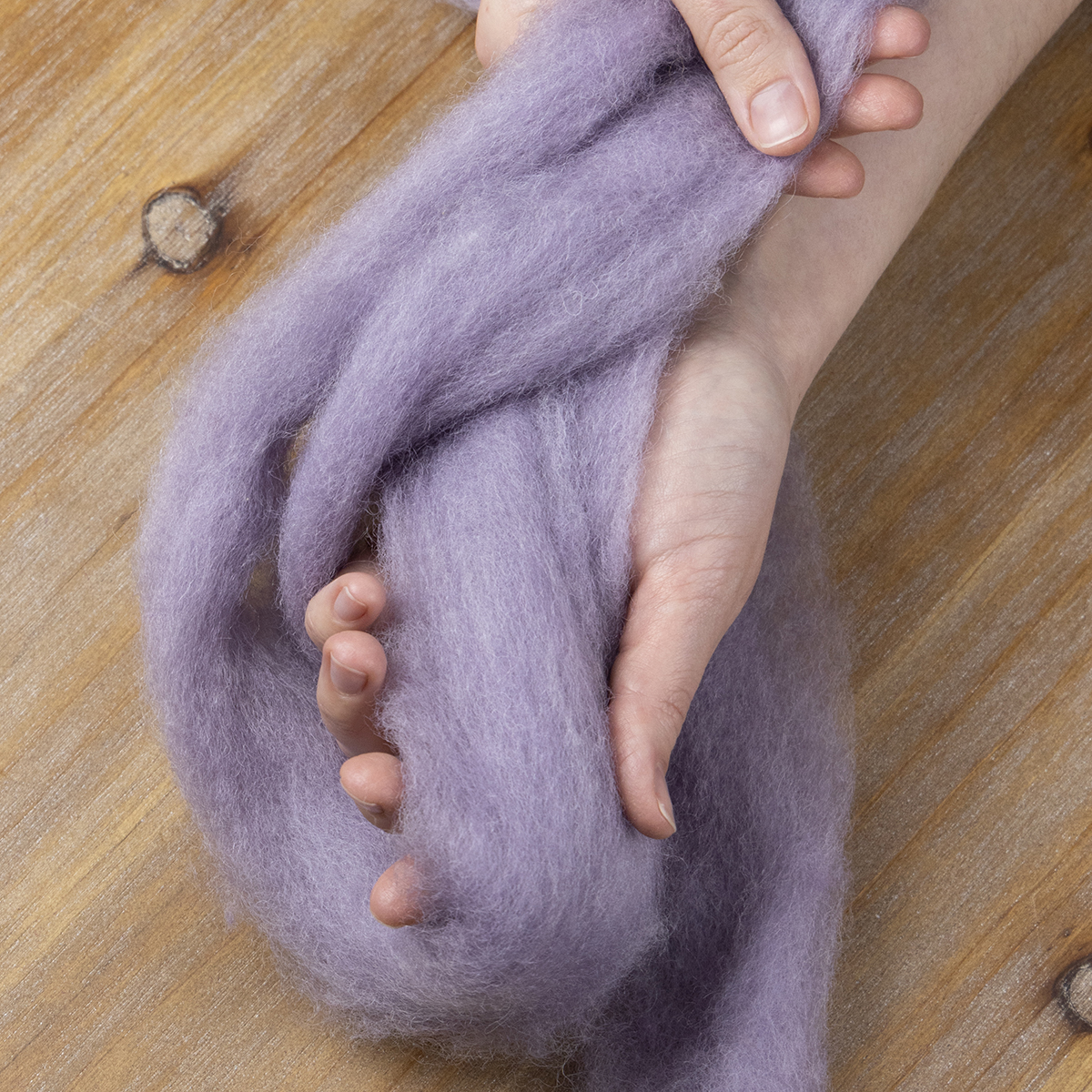 Dekoratív gyapjú, világoslila, 2 m-es gyapjúzsinór, nemezelt gyapjú kézműveskedéshez és virágkötészethez