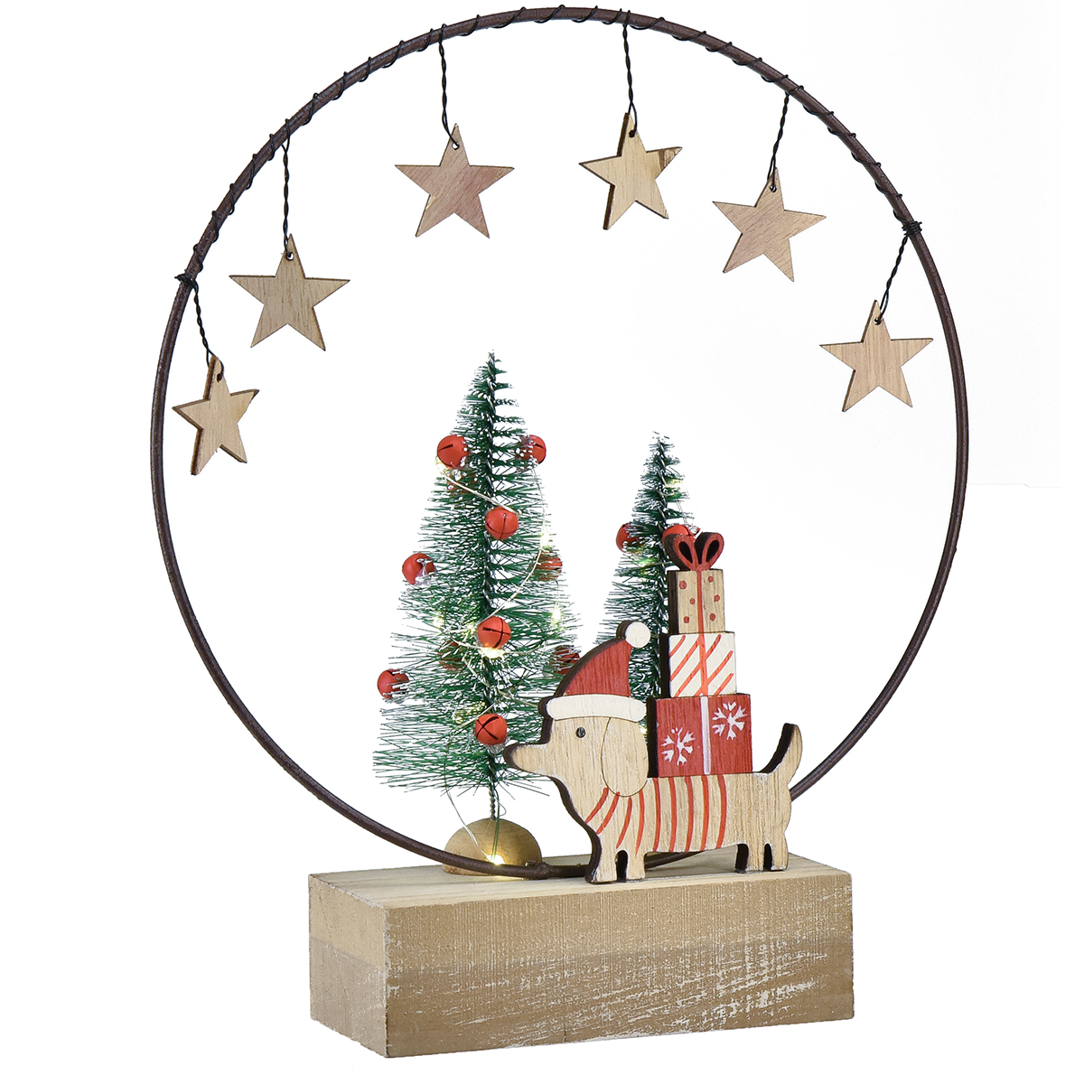 Dekoratív gyűrű fa fém karácsony kutyával Ø21cm H25cm