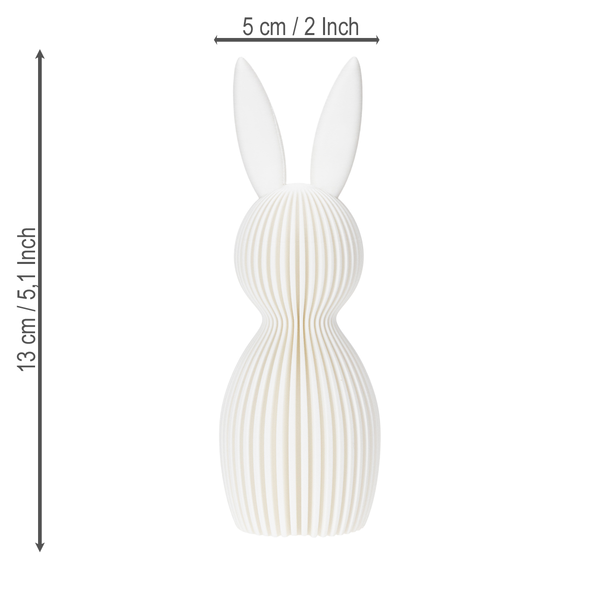 Tapasztald meg az elegáns dizájnt a legjavából! Ez a dekoratív nyúlfigura modern, összecsukható megjelenésével igazi fénypont a kortárs és minimalista enteriőrök szerelmeseinek. A praktikus, 13 cm magas és 5 cm átmérőjű nyúl könnyedén beilleszkedik bármilyen környezetbe anélkül, hogy feltűnő lenne. A fehér szín gyönyörűen harmonizál a különféle belső stílusokkal – a skandináv és minimalista stílusoktól a városi-modern stílusokig. Egyszerűen helyezd egy polcra vagy asztalra, és a nyúl stílusos kiegészítője lesz szobáidnak.