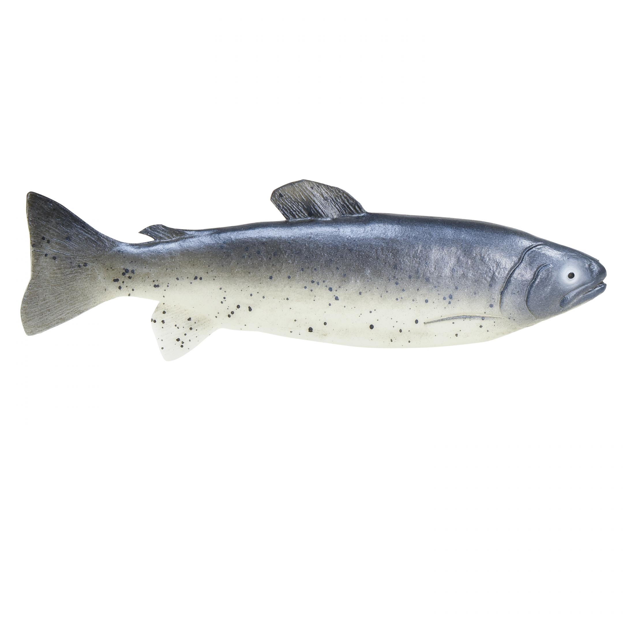 A díszhal műanyagból készült és pisztrángszerű kialakítású. Amíg a has fehér, a mintás test felfelé egyre sötétebb ezüstszürke színűvé válik.