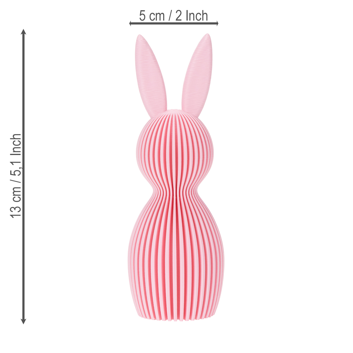 Kicsi, de tökéletesen megformált – ez a díszes nyuszi igazi fénypont a húsvéti dekorációk között. 13 cm magas és harmonikus rózsaszín árnyalatú, tökéletesen arányos, hogy magára vonzza a figyelmet anélkül, hogy feltűnő lenne. A részletes felületi textúra egy művészi méhsejt mintára emlékeztet, hasonlóan a kézzel hajtogatott papírhoz, de valójában strapabíró műanyagból készült. Ezáltal nemcsak beltéri használatra alkalmas, hanem elég tartós is ahhoz, hogy például védett helyen is használható legyen.