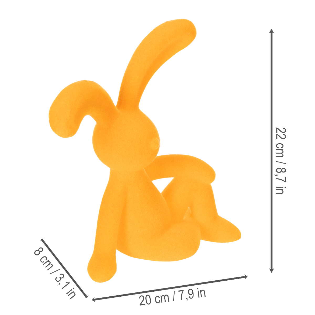 Ez az imádnivaló, sárga, műanyagból készült dísznyuszi a modern esztétikát ötvözi a hagyományos húsvéti örömmel. Bolyhosított felületének köszönhetően a figura elegánsan csillog élénk napsárga színben, és kellemes tapintású. 22 centiméter magas és 8 centiméter széles, így elég kompakt kisebb dekorációkhoz, de nagyobb húsvéti díszekben is feltűnő kiegészítője lehet. Az élénk sárga színt visz bármilyen szobába, és harmonikus összképet teremt, különösen pasztellszínű kiegészítőkkel kombinálva. Akár skandináv, modern vagy színes enteriőrben van, ez a nyuszi zökkenőmentesen illeszkedik a környezetbe.