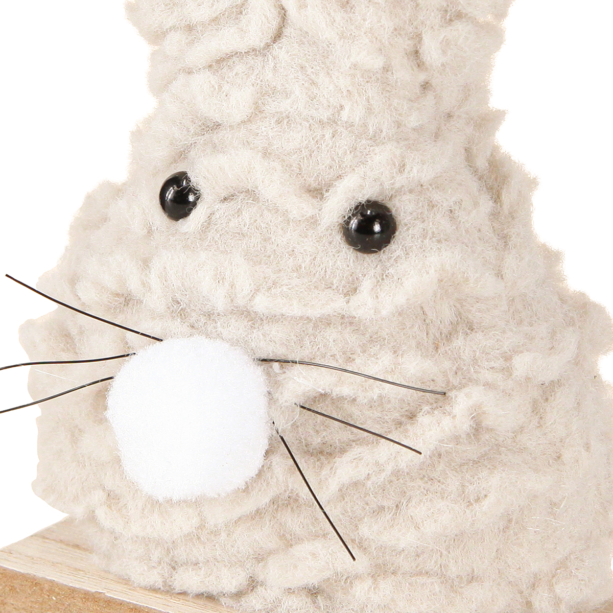 Termék neve: Dekoratív húsvéti nyuszi plüssből – bolyhos húsvéti dekoráció bézs és fehér színben fa alapon H18cm 2 db