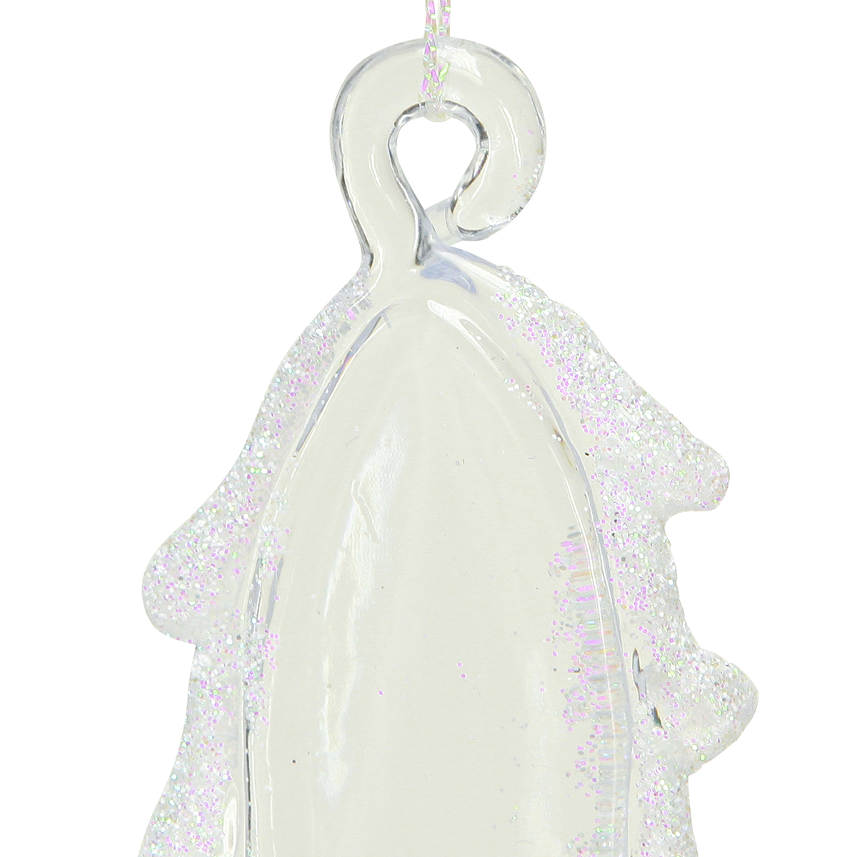 A felakasztáshoz csillámokkal megszórt fehér jégcsap kb.26,5 centiméter hosszú. A teljes hossza szalaggal együtt körülbelül 34 centiméter.