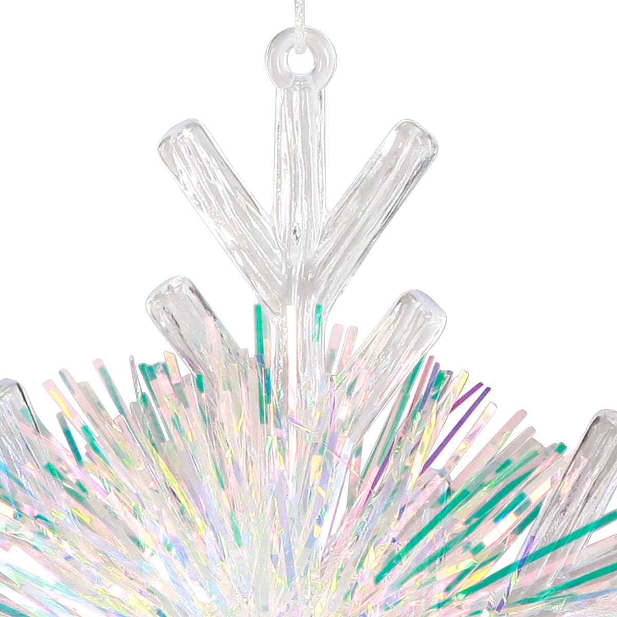A 15 cm átmérőjű, fadíszként megtervezett hópelyhek kiváló minőségű műanyagból készültek, és csillogó, irizáló felületükkel varázslatos módon ragadják meg a fényt. Akár hópehely dekorációként, csillogó ablakdíszként vagy karácsonyi asztaldíszként – ezek a hópelyhek függő dekorációként télies hangulatot kölcsönöznek minden helyiségnek.