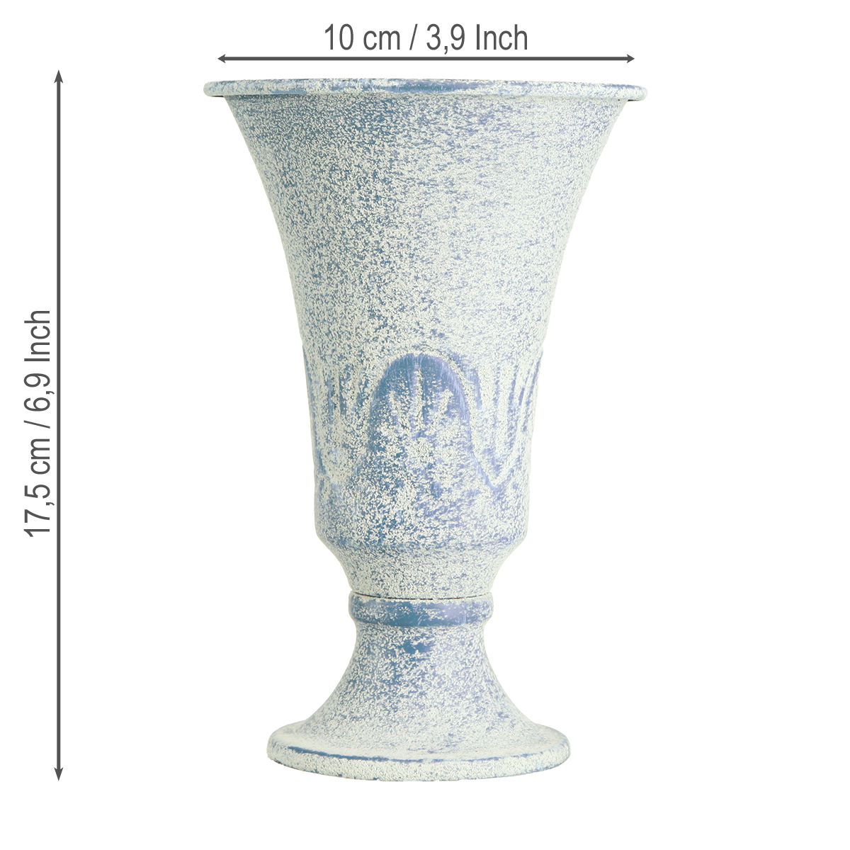 Dekoratív kehely antik fehér kék fém asztaldísz Ø11cm M17.5cm
