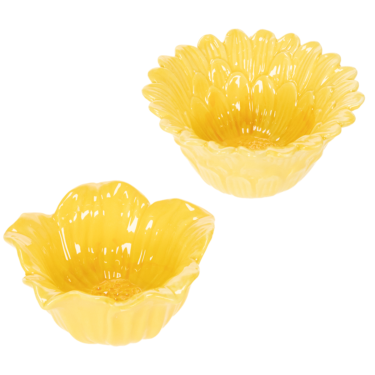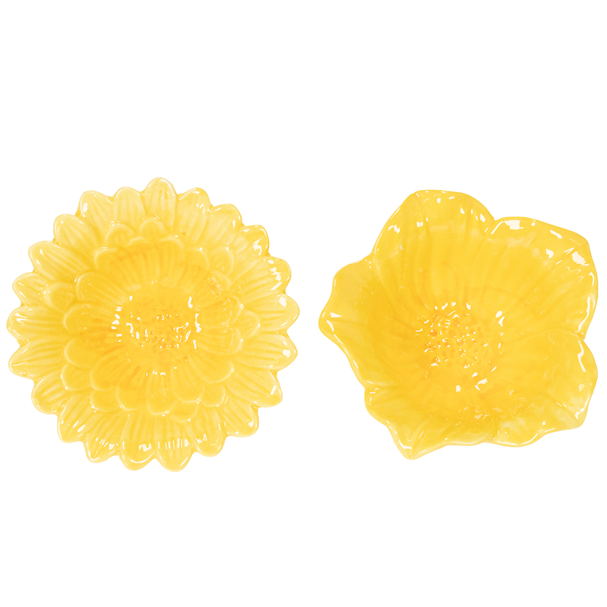 Ki ne szeretne apró részletekkel személyessé tenni otthonát? Ezek a díszes sárga kerámia virágtálak tökéletes kiegészítők, hogy azonnal friss színfoltokat vigyen otthonába, és stílusosan díszítse azt. Bájos, élénk sárga virágmintájukkal és kiváló minőségű kerámiájukkal modern hangulatot visznek otthonába. Tökéletesek kreatív virágdíszekhez, szép ajándékötletként, vagy egyszerűen apró dekorációs tárgyak kiállítására. De kérjük, vegye figyelembe: ezek a szemet gyönyörködtető kis darabok nem érintkezhetnek élelmiszerekkel. Képzelje el a szárított virágokkal teli tálakat, amelyeket mécsestartóként vagy kiegészítőként használhat a nappali tavaszi dekorációjához – garantáltan mindenki tekintetét magukra vonják!