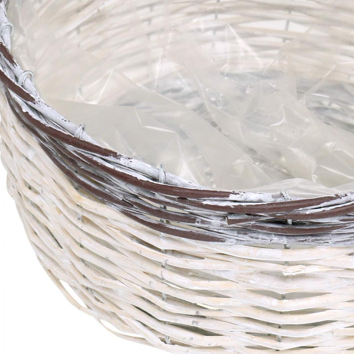 Dekoratív kerek kosár, fehér és barna, Ø29cm, fonott virágtartó, ajándék, esküvői dekoráció