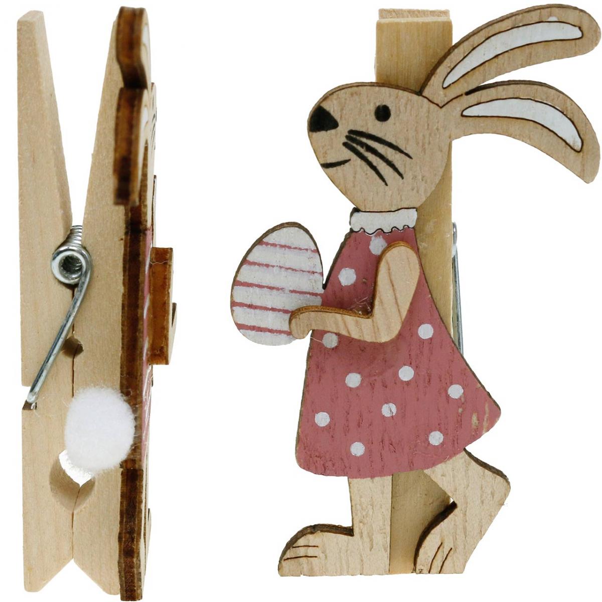 Dekoratív klip nyuszik Húsvéti nyuszik rózsaszín, fehér fa Húsvéti dekoráció 4db