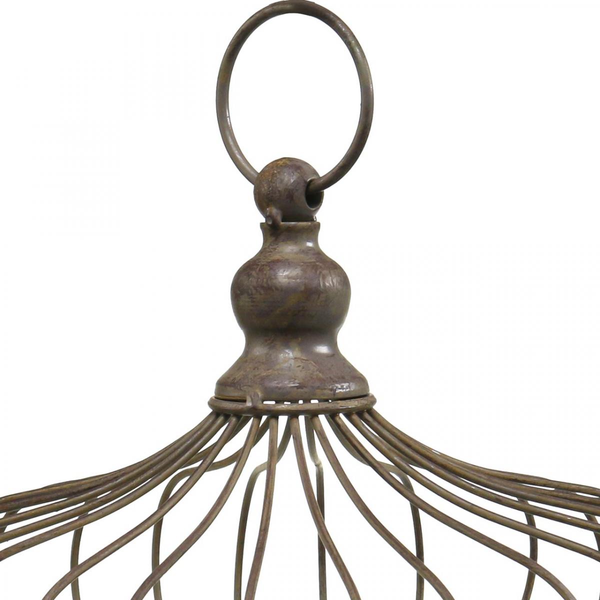 Az antik stílusú, finom rozsdanyomokkal fémből készült dekoratív korona felakasztható. A fém díszítés csúcsa formás kupola, melybe fűzőlyuk került.