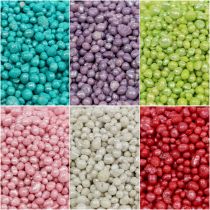 Akár csillogó, akár matt, színes vagy natúr – dekoratív homok, granulátum és kövek többféle felületi megjelenésben kaphatók. A legfinomabb homoktól a durva szemű kagylógranulátumon át a folyami kavicsig a díszhomok széles választékát vásárolhatja meg olcsón a Floristik24-ben. Szintén élénk színekben pompázó granulátumok, természetes kövek, fekete fényes kavicsok és kristálytiszta üvegkövek – a számos színeffektusnak és anyagnak köszönhetően a kreativitásnak nincs határa a dekorációban és a kézműveskedésben.
