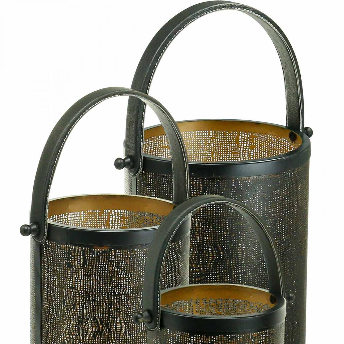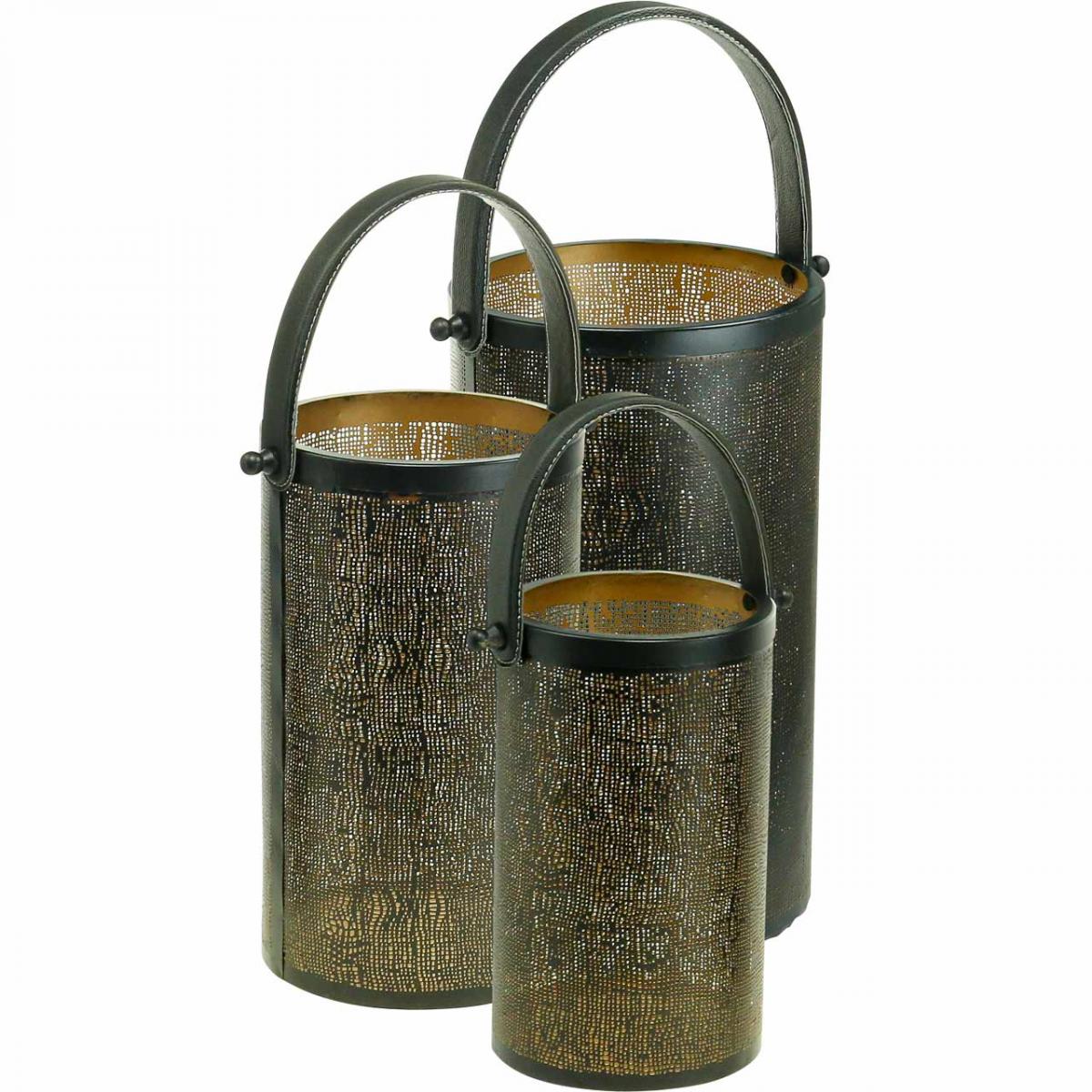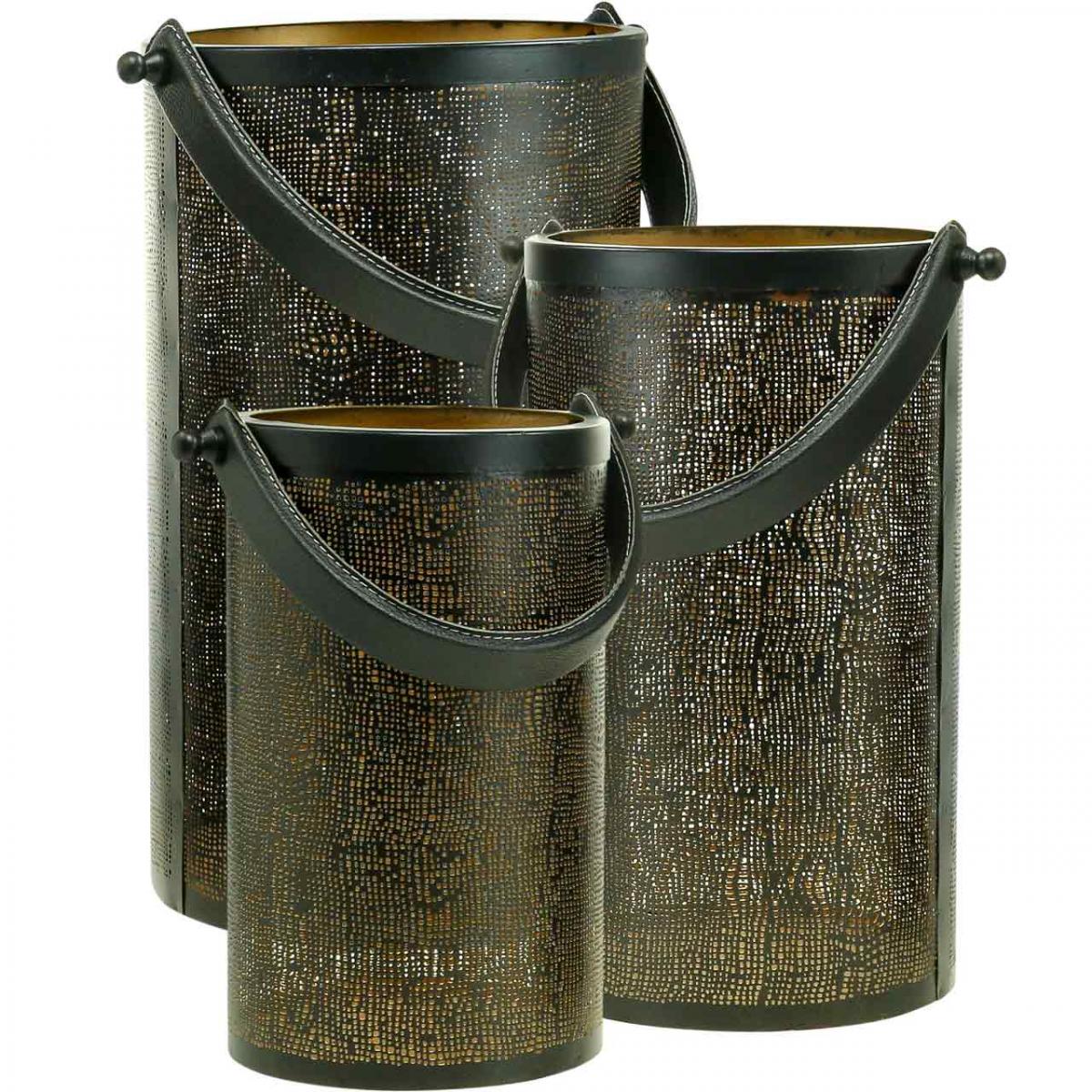 A gyönyörű lámpákat egy praktikus 3 darabos készletben kapja meg, három méretben. A fémlámpák körülbelül 35,5, 31 és 25 centiméter magasak a fogantyú nélkül, és használaton kívül gyakorlatilag egymásban elhelyezhetők.
