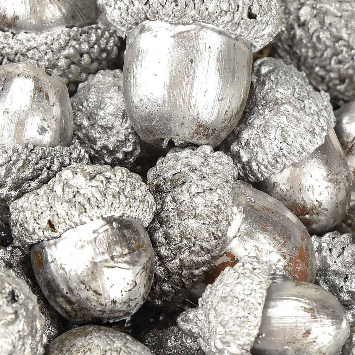Dekoratív makk ezüst, adventi dekoráció, természetes őszi gyümölcsök, vidéki ház Ø1,5 – 2,5cm H1,5 – 3cm 300g