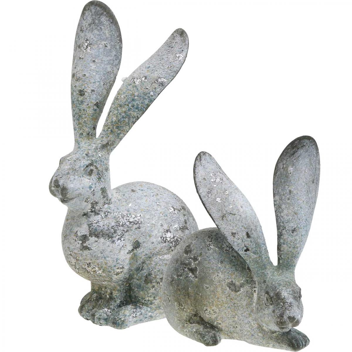 Termék neve: Dekoratív nyuszi, beton megjelenésű kerti figura, kopott sikkes, húsvéti dekoráció ezüst díszítéssel H21/14cm, 2 db-os készlet