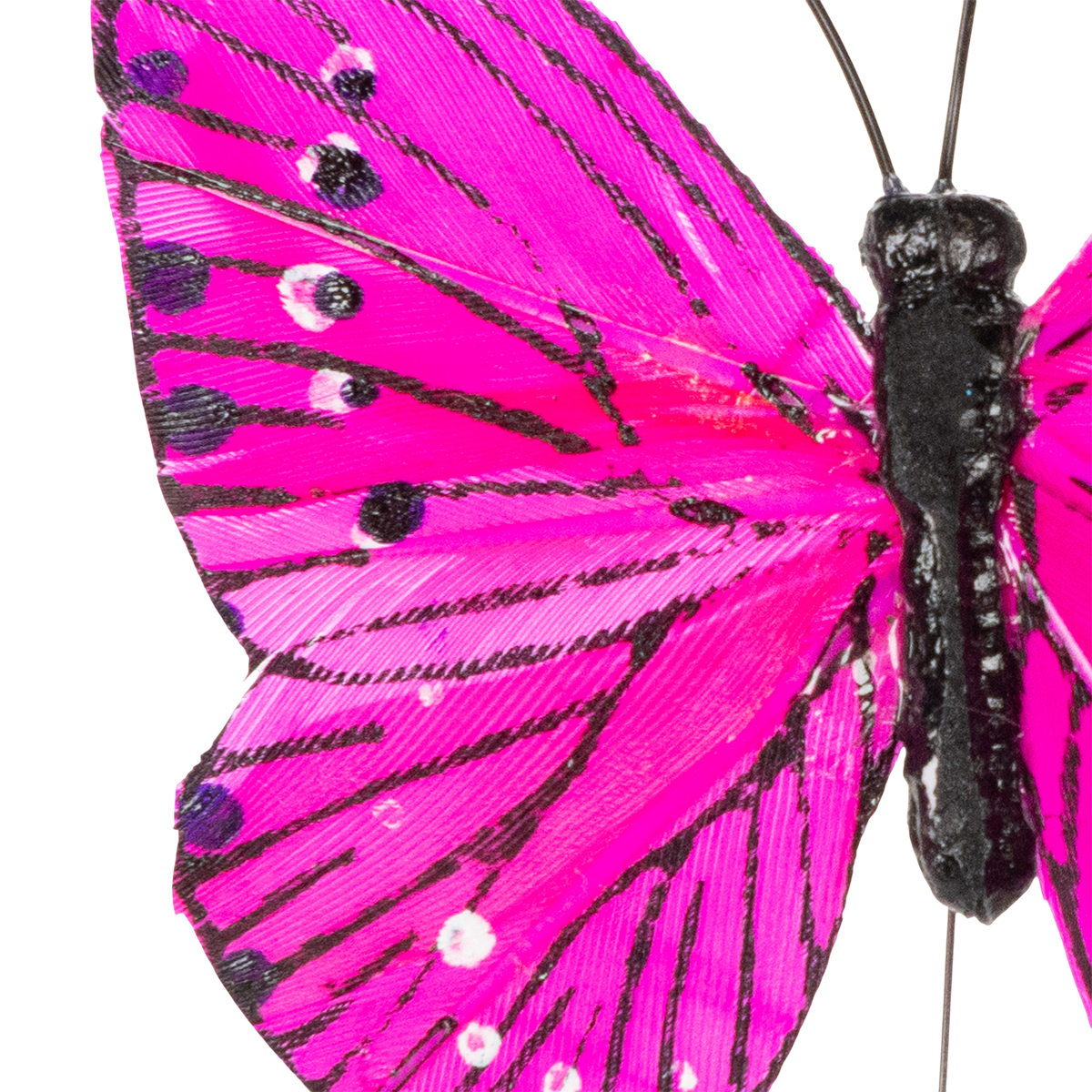 Ezek a drótra erősített díszlepkék nemcsak élénk színeikkel, hanem kiváló minőségű kidolgozásukkal is lenyűgözőek. A tollas szárnyak könnyedséget kölcsönöznek a kis pillangóknak, és csodálatosan élethűvé teszik őket. A 7 cm hosszú és 7 cm széles pillangók tökéletes méretűek ahhoz, hogy magukra vonják a figyelmet anélkül, hogy feltűnőek lennének.