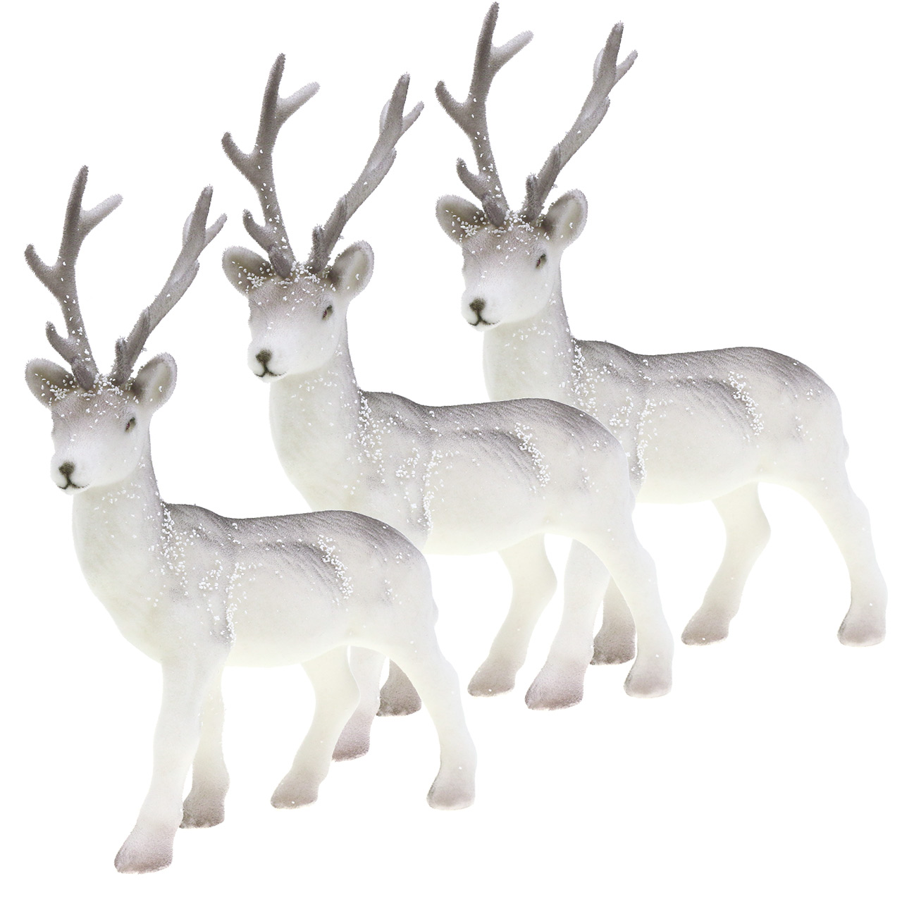 Dekoratív rénszarvas fehér csillámmal – téli karácsonyi dekoráció 20cm 3db