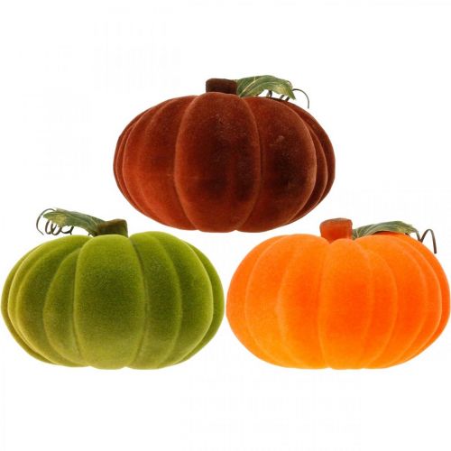 Dekoratív sütőtök bolyhos keverék narancs, zöld, piros őszi dekoráció 16cm 3 db