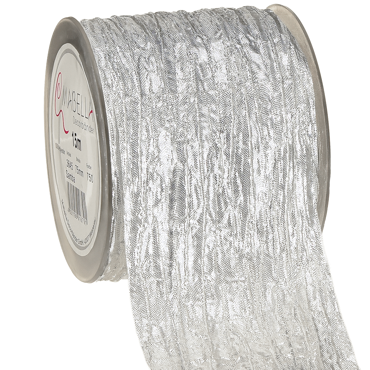 Termék neve: Dekoratív szalag, ajándék szalag, asztali szalag, ezüstös fény 75mm, 15m