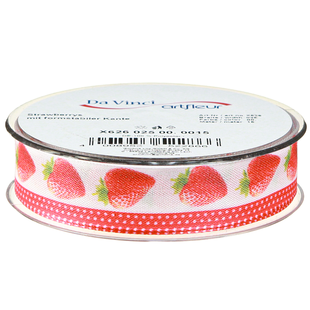 Dekoratív szalag eper szövet szalag méretstabil élek 25mm 15m