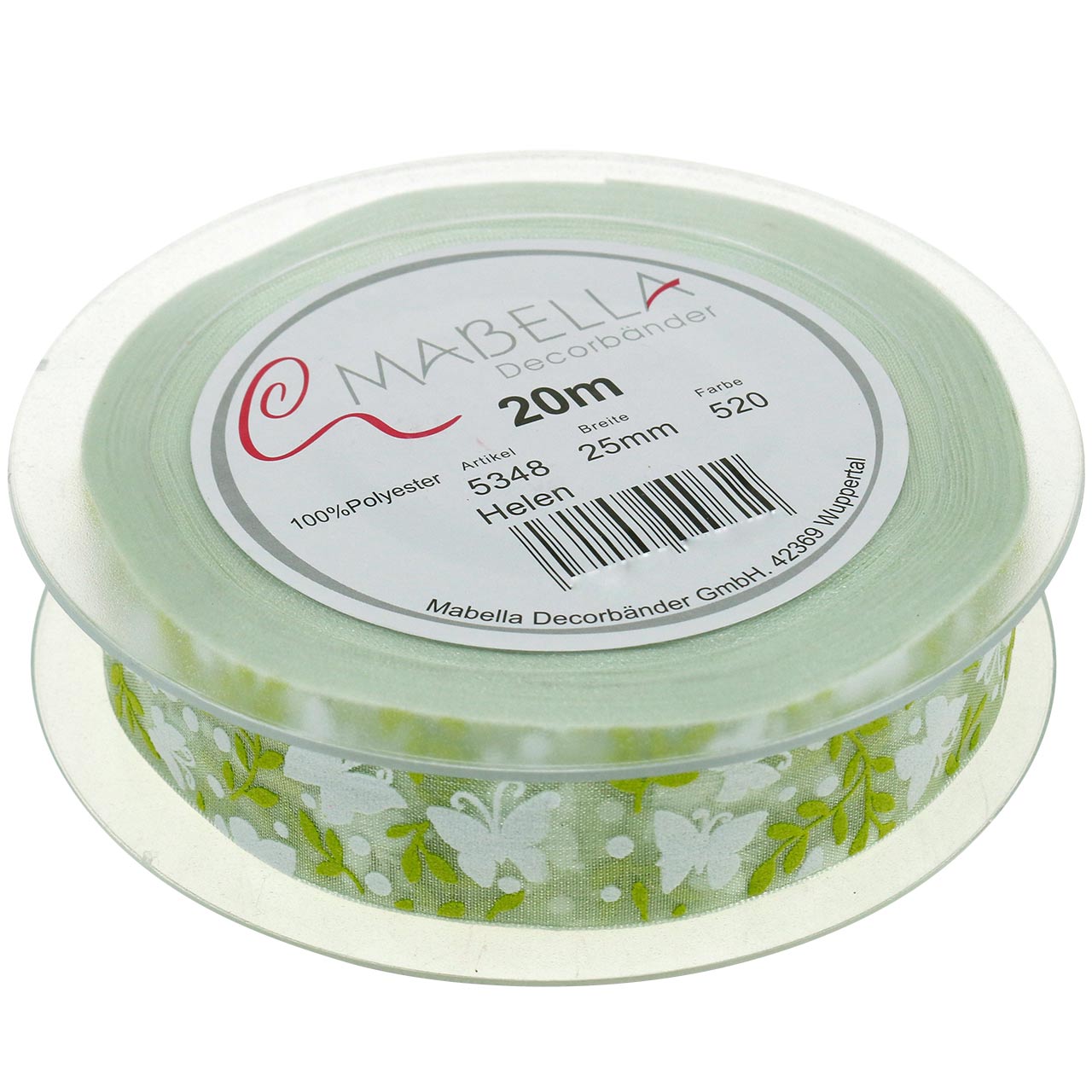 Termék neve: Dekoratív szalag pillangóval 25mm zöld organza szalag ajándék szalag 20m