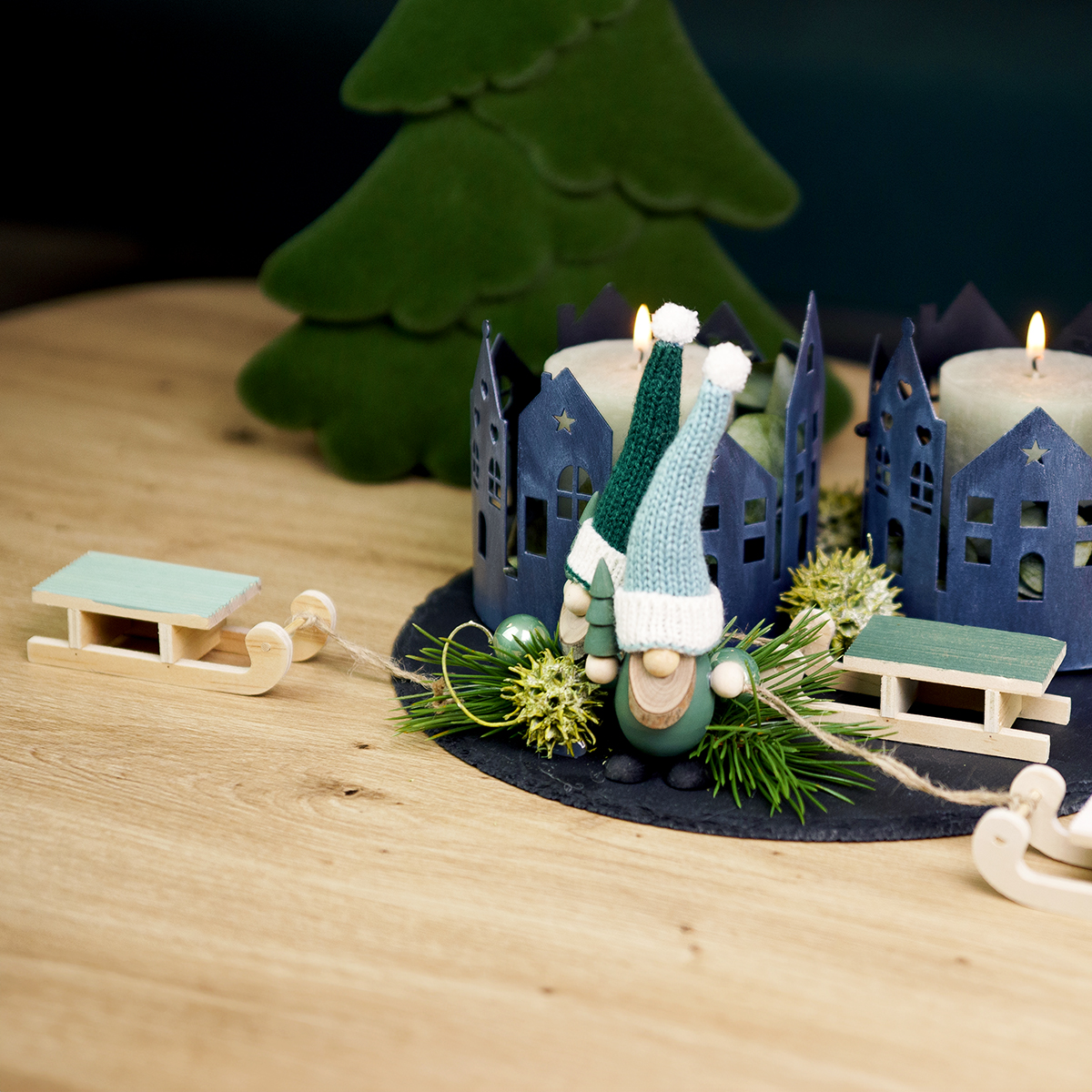 - Karácsonyi ünnepi asztaldíszbe integrálva