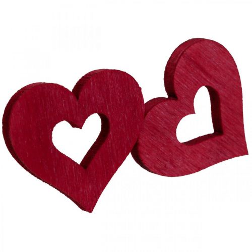 Dekoratív szívek szórvány dekoráció fa szívek piros Ø2cm 144db