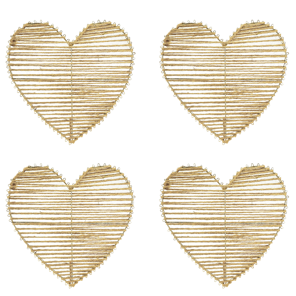 Dekoratív szívjuta natúr karácsonyi dekorációhoz függeszthető 20cm 4 db