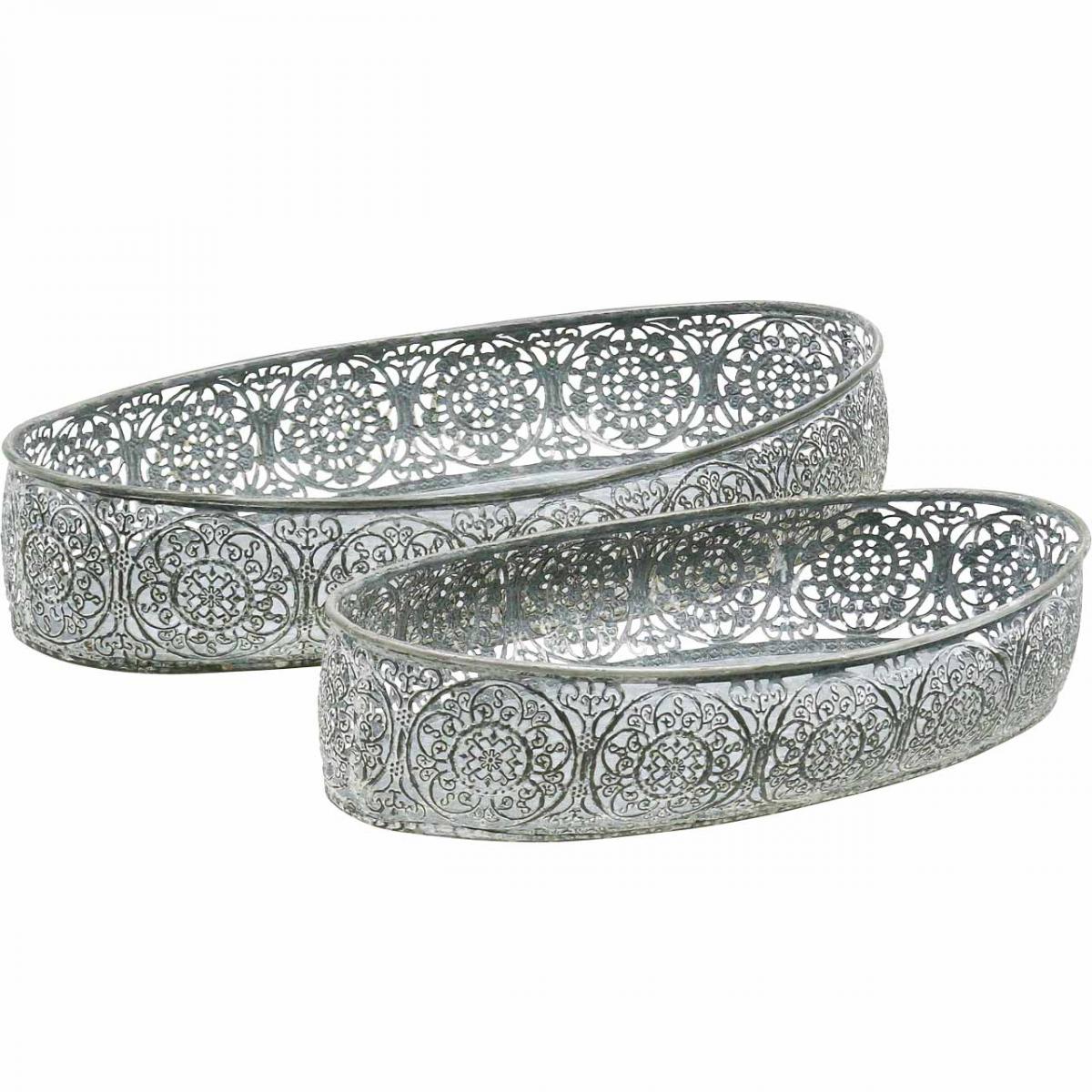 Dekoratív tál fém mintás szürke ovális L36cm/33.5cm 2 db-os készlet