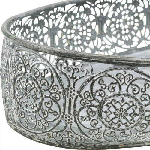 Ez a két gyönyörű, fémből készült dísztálca, díszítő peremmel biztosan megállja a helyét a komódon vagy a kredencében. A filigrán virágmintához passzoló fémtálak ezüstszürke, fehérre mosott színűek. Tökéletes a divatos vintage stílusú komódhoz!