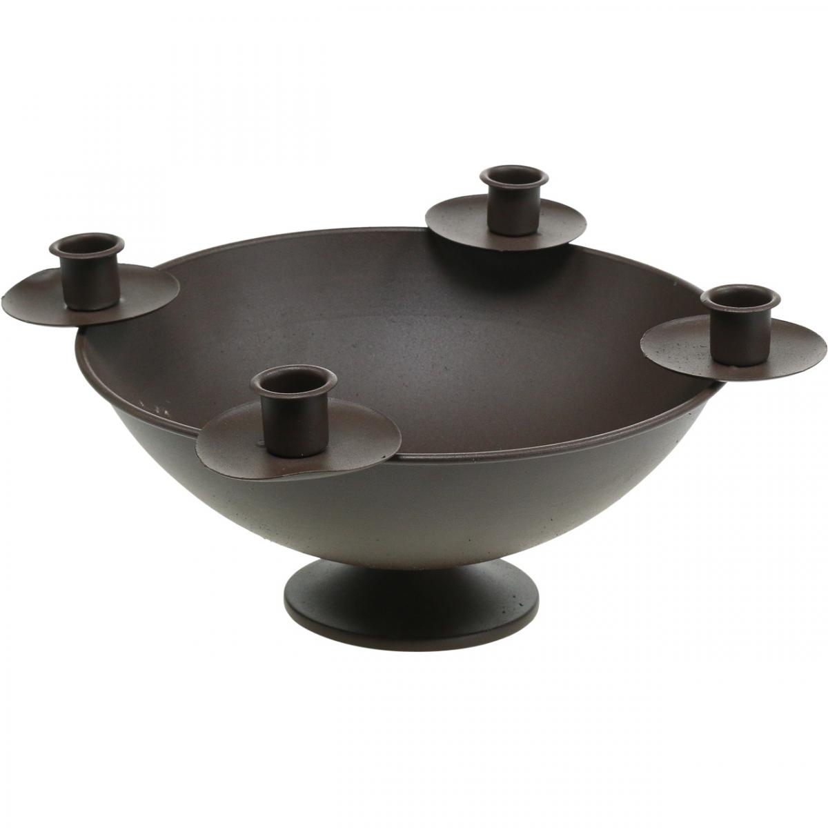 Dekoratív tál gyertyatartó rúd gyertyatartó fém barna Ø31cm