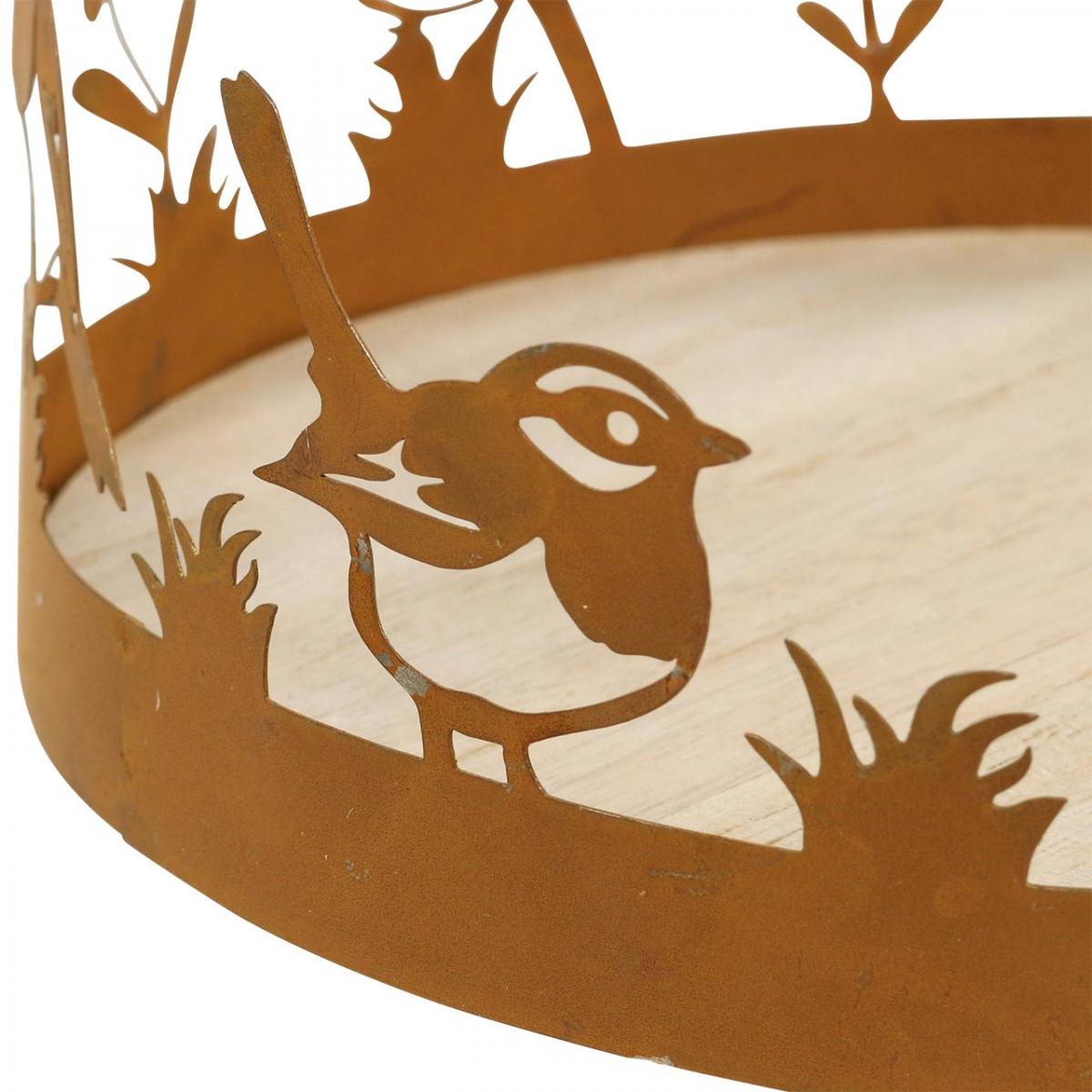 Dekoratív tálca, asztali díszek madarakkal, tavaszi dekorációs patina Ø20cm H8,5cm