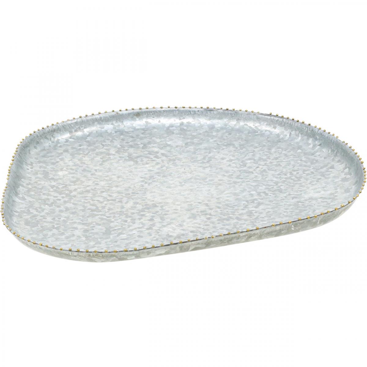 Dekoratív tálca, fémtálca, horganyzott tálca, antik megjelenés, 30,5 cm