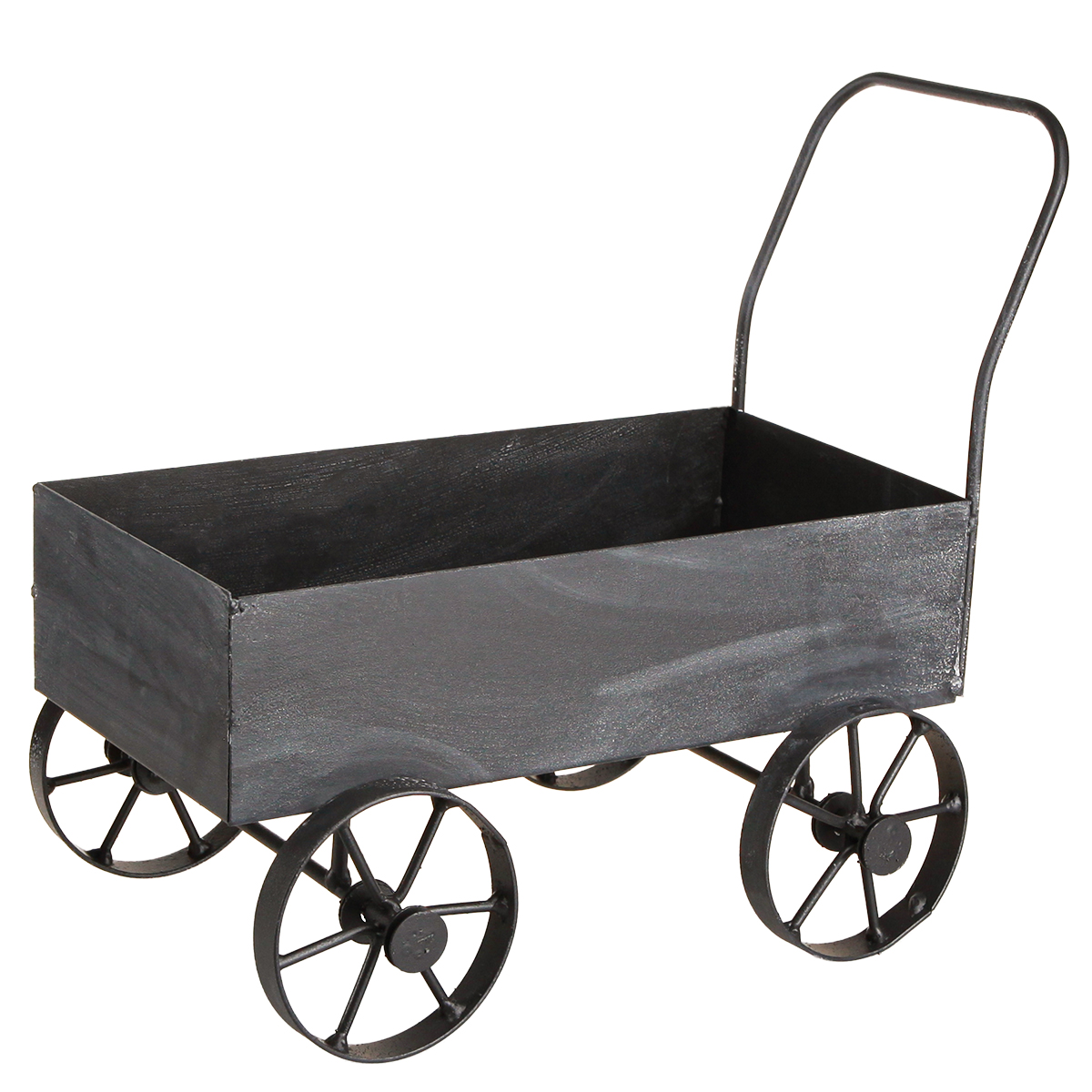 Antracit fémből készült növénydoboz dekoratív talicskának otthonra, erkélyre és kertre