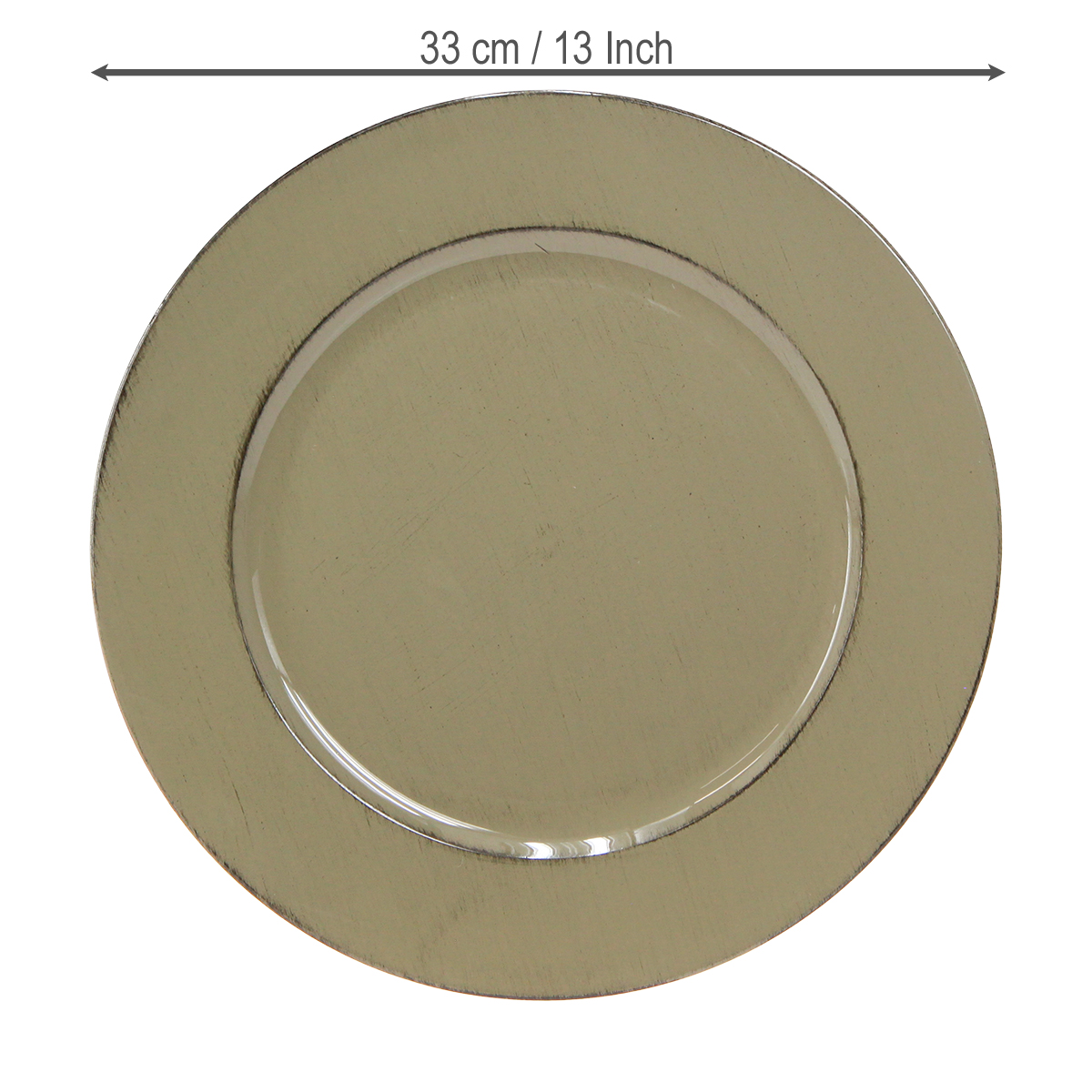Fedezd fel zöld műanyag tányérunk egyedi báját, amely stílusos vintage hangulatot kölcsönöz bármilyen asztalterítéknek. Mohazöld színének és finom barna vintage díszítéseinek köszönhetően ez a dísztányér gyorsan asztalod fénypontjává válik. Az átlátszó, fényes bevonat elegáns megjelenést kölcsönöz neki, amely tökéletes mind ünnepi alkalmakra, mind meghitt összejövetelekre. Különösen alkalmas ünnepségekre és rendezvényekre, vagy akár kerti partikra, és sokféleképpen díszíthető. A körülbelül 33 cm átmérőjű tányér tökéletes szalvéták vagy más apró dísztárgyak bemutatására, de nem alkalmas ételek tárolására. A mohazöld szín és a fekete alsó rész stílusos kombinációja számos lehetőséget kínál az asztalteríték kreatív megtervezésére.