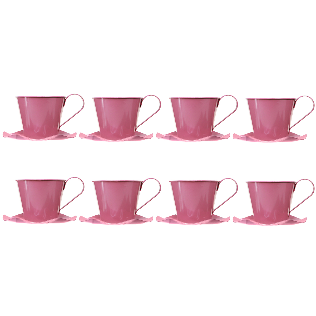 Dekoratív teáscsésze fém csésze tányérral rózsaszín Ø12 H10cm 8 db