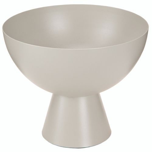 A fogantyús dekoratív trófea fenségesen áll az elegáns magas alapon. Maguk a fogantyúk gyönyörűen íveltek a csészevázán.A dekoratív fém ültetőgép antik megjelenését a fehér mosás hangsúlyozza. Ez adja a barna csészének az elmúlt napok varázsát.