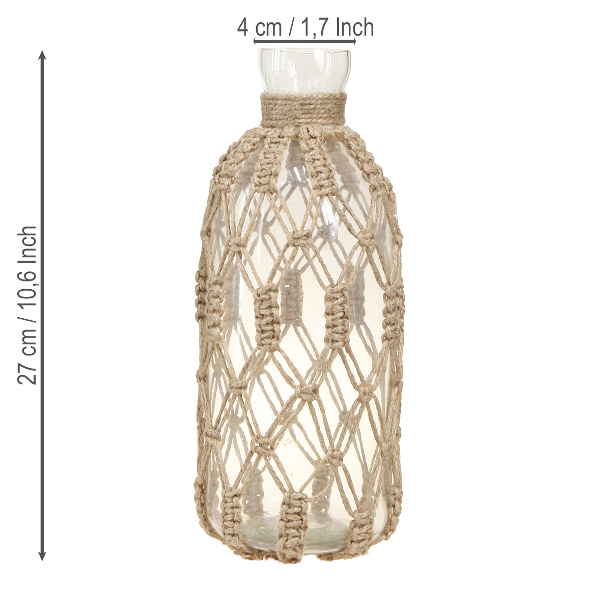 - Kiváló minőségű üvegpalack jutából készült makramé díszítéssel
