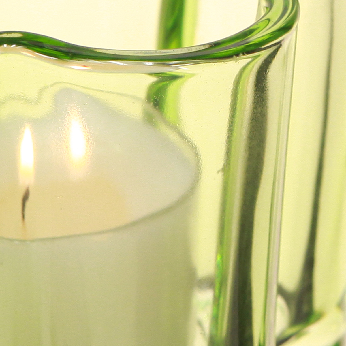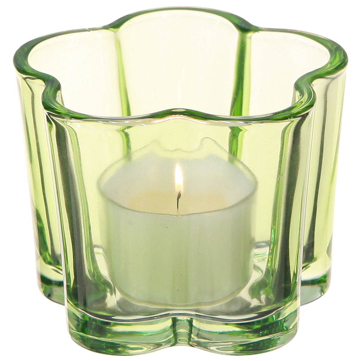 Dekoratív üveg teamécses tartó virágforma zöld Ø7,5cm H6cm 6db