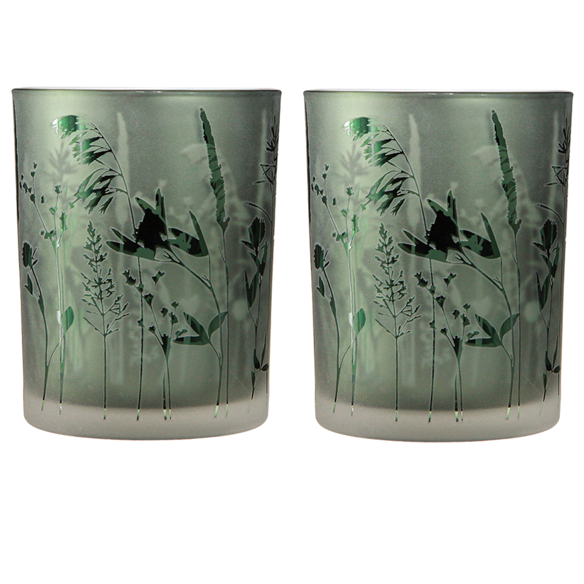 Termék neve: Dekoratív üveglámpás zöld fehér motívum rét H12,5cm 2 db