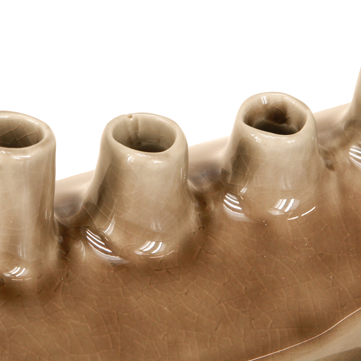 Tapasztalja meg a minimalista dizájnelemek szépségét dekoratív vázánkkal. Ez a gyönyörű barna kerámiaváza csónakszerű kialakítású, a modern dizájnt a klasszikus eleganciával ötvözi, és lenyűgöző látványt varázsol bármely helyiségbe. Egyedi formájával. Hét nyílással és lágy barna színével ideális a skandináv és a modern dekoráció szerelmeseinek. A kiváló minőségű mázas kerámia meleg és hívogató légkört kölcsönöz lakóterének. A nappaliban vagy az étkezőasztal stílusos dekorációjaként ez a kerámia váza stílusosan bemutatja kedvenc virágait, vagy önálló dekorációs tárgyként. Engedje szabadjára kreativitását, és kombinálja más dekorációs cikkekkel a Floristik24 kínálatából.