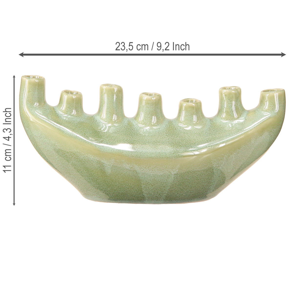 Csónakkerámia váza világoszöld színben: dekoratív fénypontja otthonának