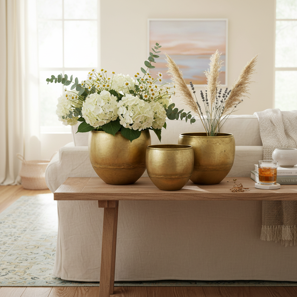 Üzletünkben több dekoratív vázát és dísztálat is találhat sárgaréz vagy antik arany színben.