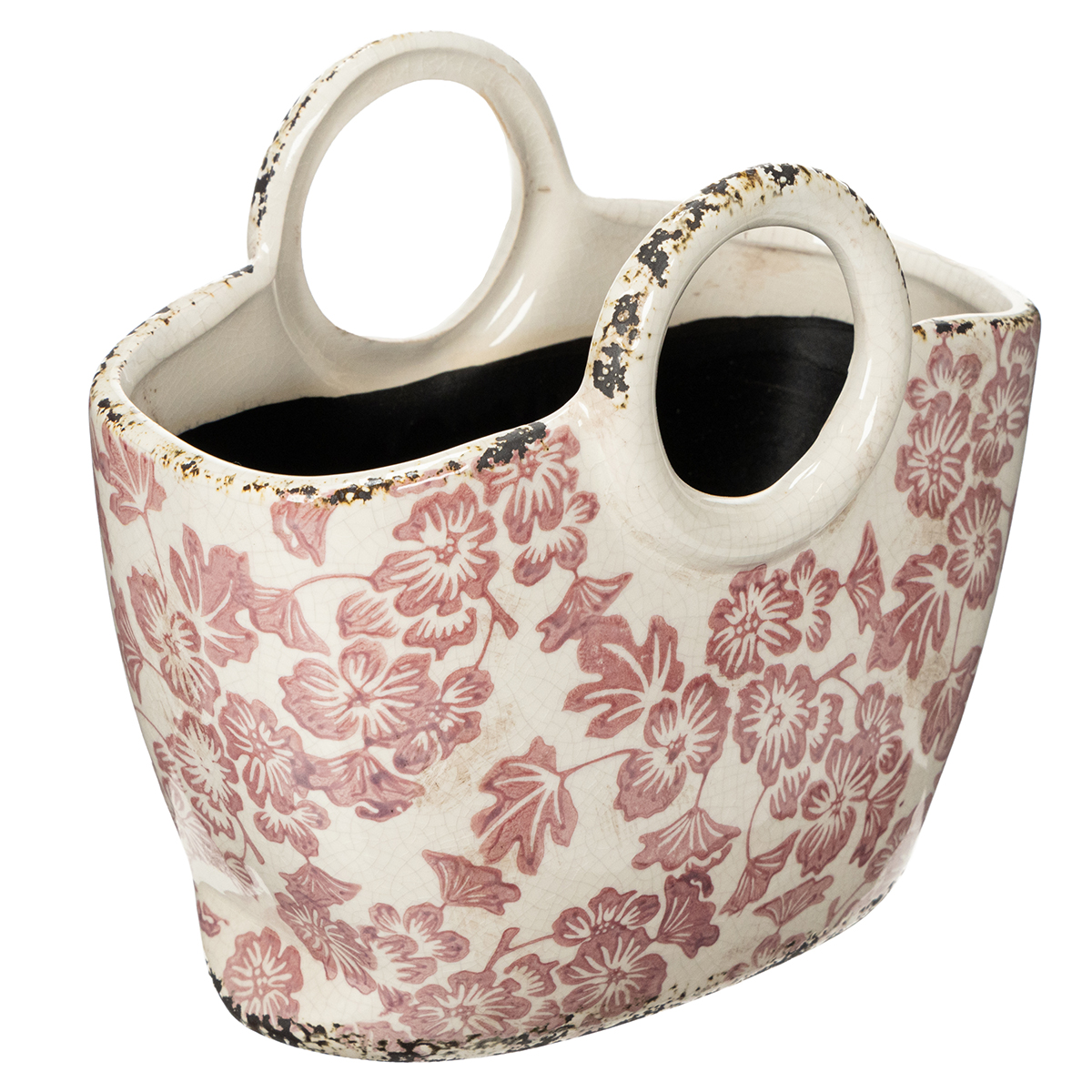Termék neve: Dekoratív virágcserép füllel, virágos, 21cm