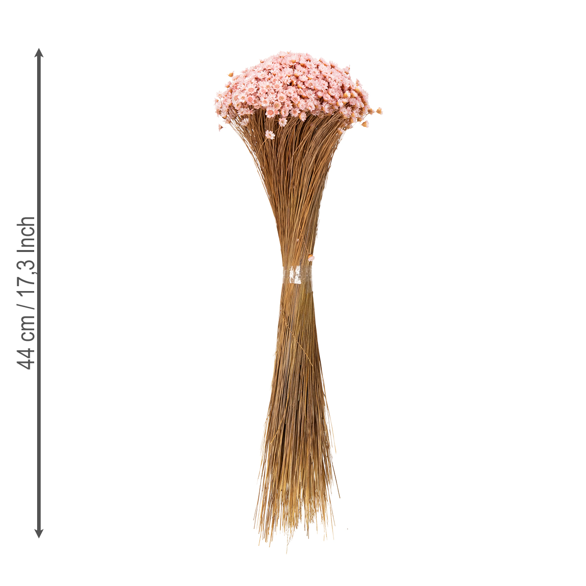 Természetes, kiváló minőségű fűfélékkel és a Glixia finom rózsaszín virágaival ez a dekoratív virágcsokor tiszta tavaszi örömöt csempész otthonába. A szándékosan visszafogott rózsaszín és természetes árnyalatú színséma egyszerű eleganciát kölcsönöz neki, amely sokféleképpen felhasználható. 44 cm hosszúságával tökéletes központi dísze lehet a húsvéti asztalnak, vagy egy barkácsolás részeként is használható. Ez a virágcsokor különösen jól kombinálható nagyobb fűfélékből vagy más tavaszi virágokból álló csokrokkal. A finom virágok gyönyörűen harmonizálnak az olyan friss színekkel, mint a sárga vagy a fehér, és lenyűgöző kiegészítőket adnak a minimalista kompozícióknak.
