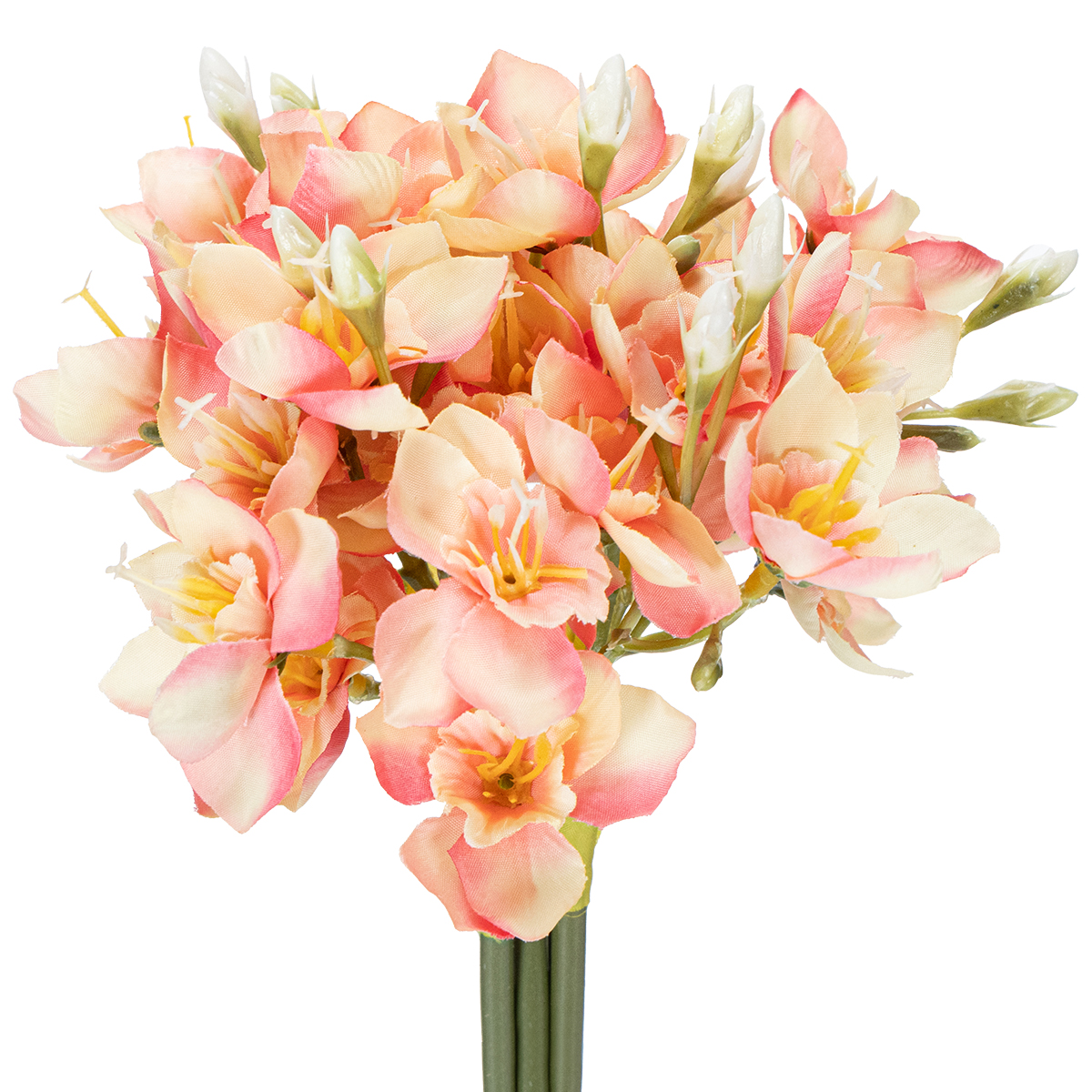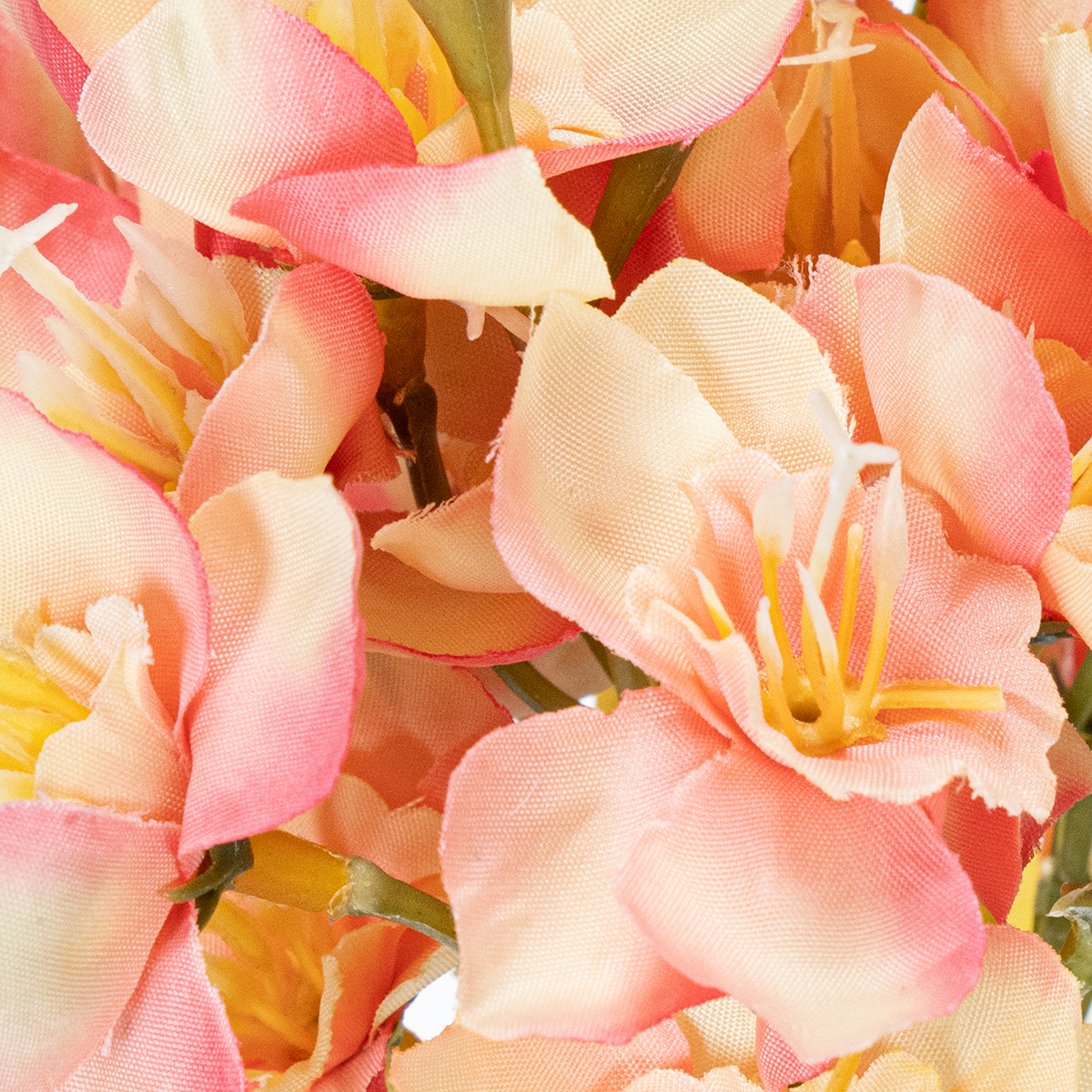Az alsztroméria, más néven perui liliom, a virágok nyelvén a barátságot, az odaadást és az erőt szimbolizálja. Meleg rózsaszín árnyalatai a szeretetet, a hálát és a szeretetet jelképezik – ideális mindazok számára, akik szívből jövő üzeneteket szeretnének közvetíteni dekorációjukon keresztül. Nemcsak a virágkötészetben, hanem művirágként is, ez a virág értelmet ad a lakótereknek és különleges alkalmakra is.