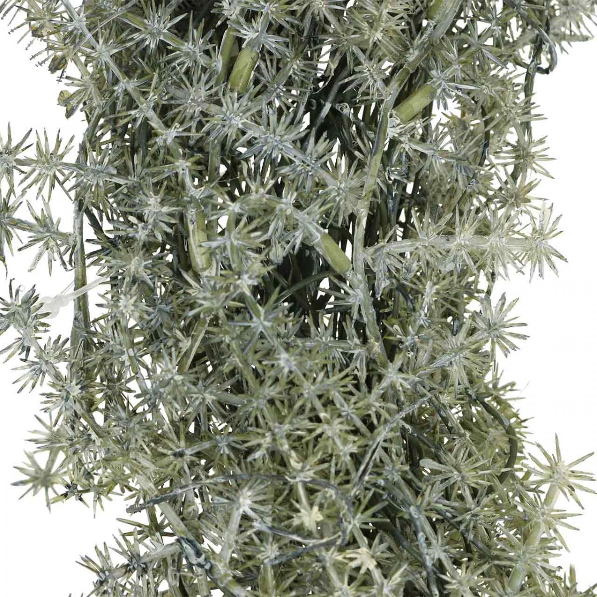 A műtűlevelű ágakból készült nagyméretű díszkoszorúnak kisebb megfelelőjét is találod üzletünkben, illetve egy ugyanilyen igazinak tűnő füzért is.