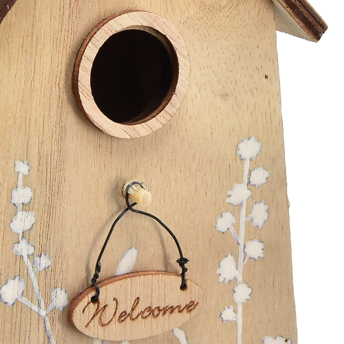 Varázslatos, fehér és természetes fából készült madárházaink tökéletes kiegészítői otthonának, akár a nappaliban, akár a lakás ajtaján. A fehér madárházak lenyűgöznek részletgazdag kialakításukkal, és igazi szemet gyönyörködtetőek. A körülbelül 14,5 cm magas és robusztus juta zsinórral felszerelt házak könnyen felakaszthatók, és varázst és eleganciát varázsolnak minden helyiségbe. A vintage stílusra jellemző madárházakban olyan finom részletek találhatók, mint a bejárati nyílás, egy szeretetteljes üdvözlőtábla és egy bájos, fehér virágos rétre emlékeztető nyomat. Ezek a dekorációs elemek nagyszerűek ajándéknak és ajándéknak bármilyen alkalomra, legyen szó akár nappali, terasz díszítéséről, akár belsőépítészet részeként. Engedje szabadjára kreativitását, és kombinálja a dekoratív madárházakat a Floristik24 termékcsalád más természetes kiegészítőivel.